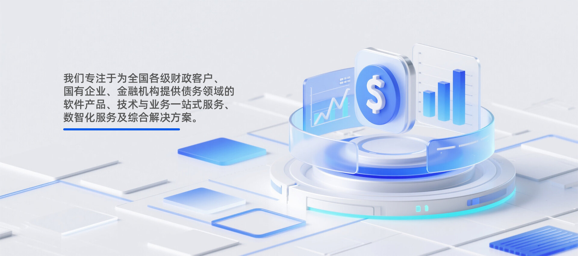?????作為一家高新技術企業,我們專注于為全國各級財政客戶、國有企業、金融機構提供債務領域的軟件產品、技術與業務一站式服務、數智化服務及綜合解決方案。